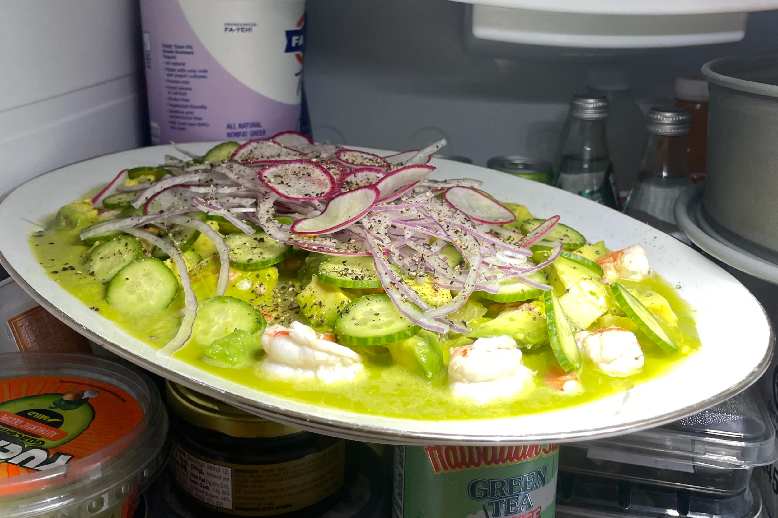 Drain the lime juice from the shrimp and set aside in the fridge.