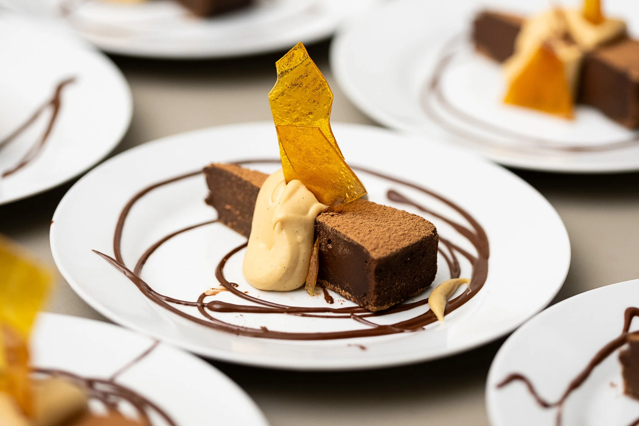 There are so many lovely ways to top this cake. I’ve served it covered in a warm pool of salted caramel (pictured above), that was delicious. For the fundraiser I served it with a whipped caramel cremeux, which is a caramel custard of sorts. If you’re a real chocoholic you could top it with a chocolate ganache. A vanilla creme anglaise would be divine. It is also lovely finished with a nice simple dusting of powdered sugar or cacao powder.